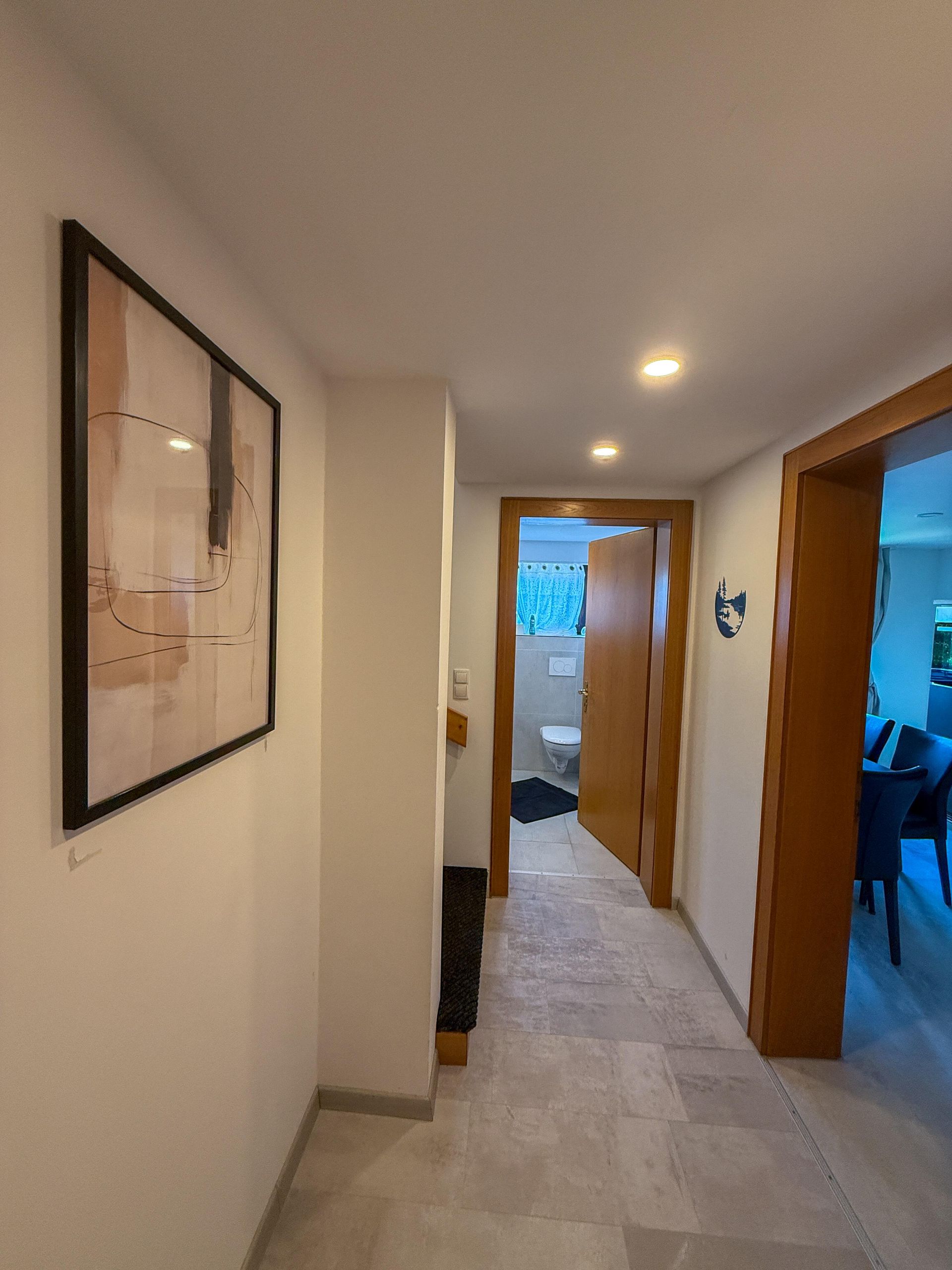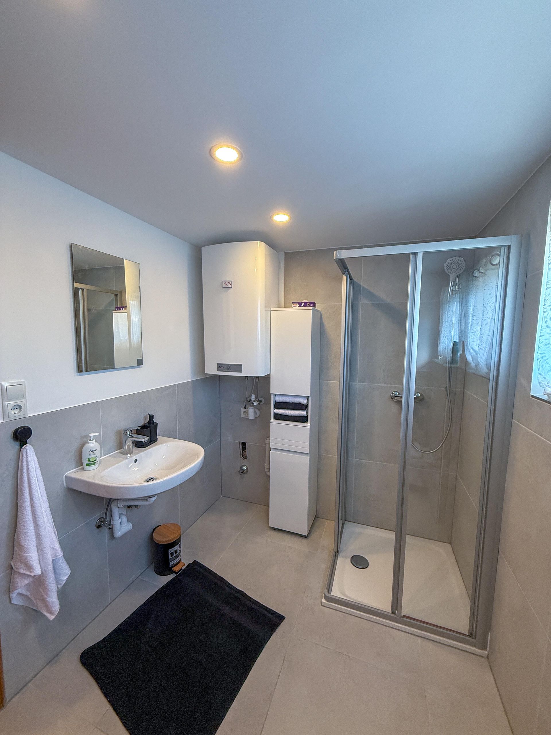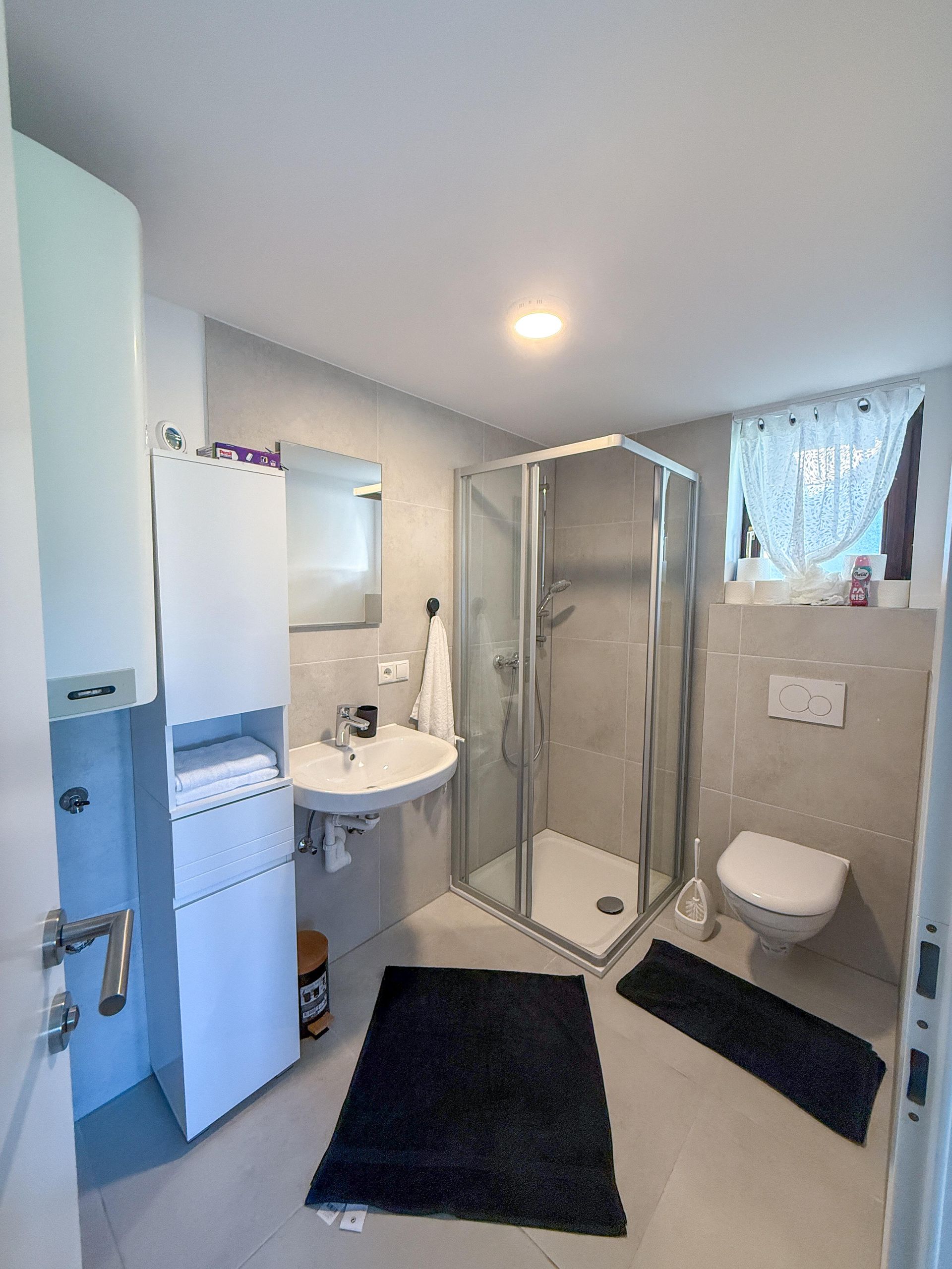- Modernes Bad mit Dusche, WC, Handtüchern & Haartrockner